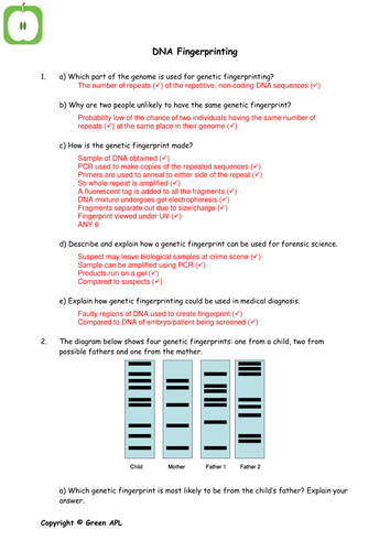 Dna Fingerprinting Worksheet Answers - Biology revision: Worksheets covering year 2/A2 Biology by ... - Dna, or deoxyribonucleic acid, is a biomolecule, which serves as the blueprint of living organisms.